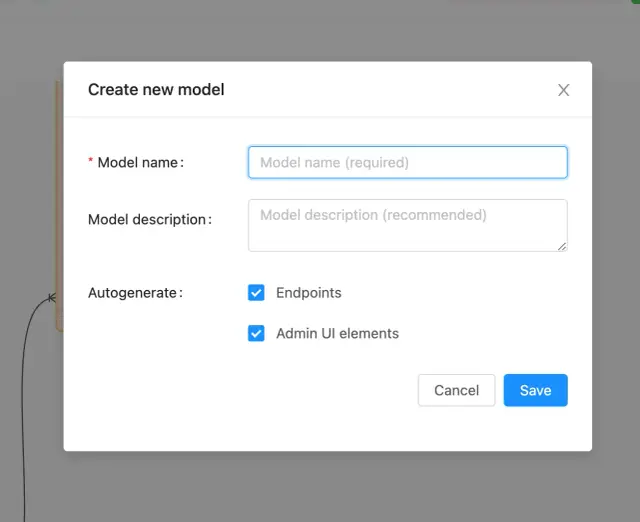 يتم تمثيل جميع نماذج قواعد البيانات على شكل كتل. يمكن نقلها بحرية حول مساحة العمل وترتيبها بالترتيب المطلوب. يمكنك أيضًا إضافة حقول مخصصة لكل نموذج. عند إنشاء حقل جديد ، تحتاج إلى إدخال اسمه ووصفه وتحديد إعدادات إضافية.