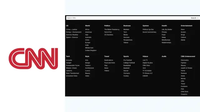 Their footer website design has clean, crisp typography that makes navigating their content easy. With bold contrasting colors of black, white, and red, this footer design stays true to the overall website aesthetics.