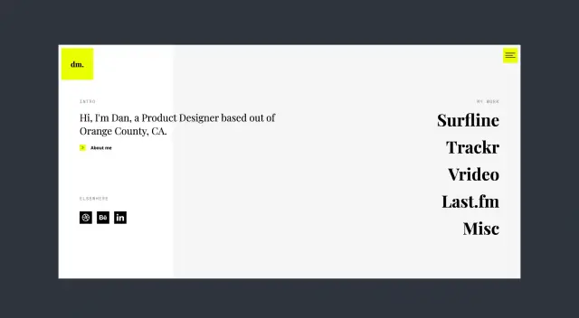 This is a web designer with a clear vision and style that are both visible as soon as you land on this portfolio. It's also very simple and has just a few elements. Despite being visually simple, however, this is highly interactive.