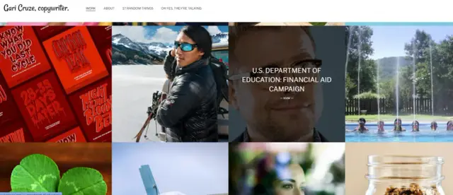 Gari Cruze is an accomplished copywriter, and it is his brand too. And his website perfectly tells why he excels at it. The homepage welcomes the audience with pictures, and upon hovering over it, it will show the campaigns he worked on. It is a great personal branding method that lets visitors familiarize themselves with Gari Cruze's work.
