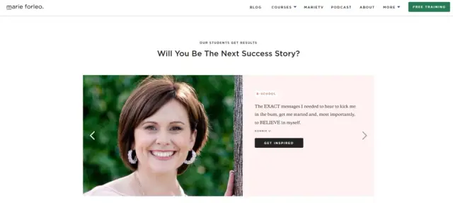 Marie's site is a good example of personal branding done right. She is a successful figure and entrepreneur with an audience in more than 200 countries. Her website is trendy, and the homepage acts as her portfolio. Even though the homepage is full of happenings, the properly optimized design depicts Marie's personality perfectly. Marie Forleo has a business school named B-School, and her homepage shows success stories of her customers, and this is an excellent example of promotion on a site homepage.