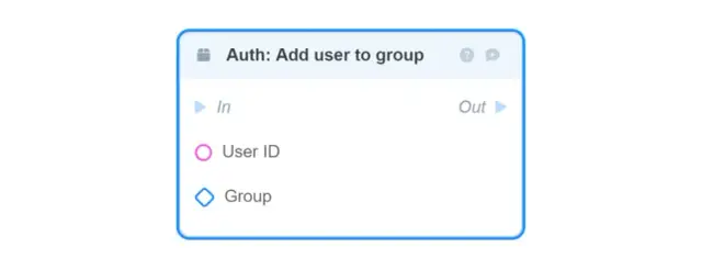 Auth: Add user to the group— adds a user to the specified user group by its ID (defined in the Auth module settings);