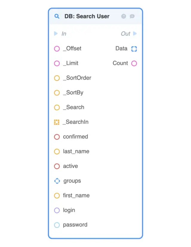DB: Update User— resets all fields of the User-object block passed to the input in the database and updates them in accordance with the specified values (to change only the specified fields, the DB: Patch User block is used);