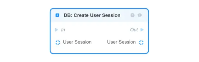 DB: Create User Session — stores in the database and returns the given User Session object (to build it from the given fields, use the Make User Session block);