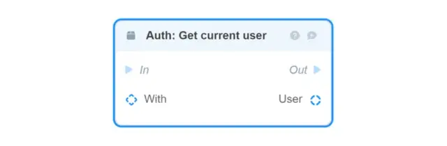 To do this, go to the Business logic tab and drag the Auth: Get current user block.
