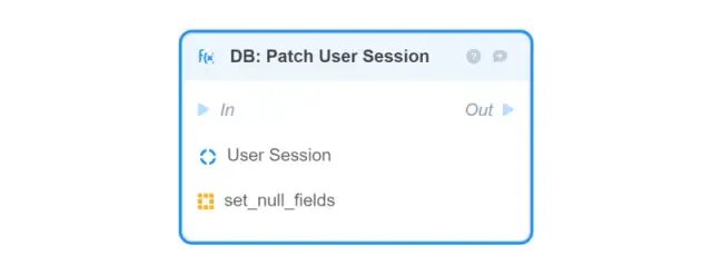 DB: Patch User Session — updates the specified fields of the User Session object in the database (to reset all fields, use the DB: Update User Session block);