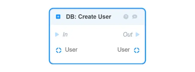 DB: Create User — stores in the database and returns the given User object (to build it from the given fields, use the Make User block);