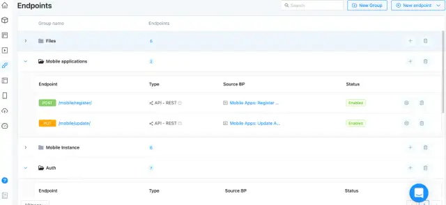 AppMaster.io works with endpoints. All endpoints are divided into folders depending on the data they work with. For example, all endpoints working with mobile applications are located in the Mobile Applications folder.