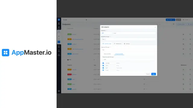 AppMaster enables the linking of endpoints to business processes, automatically associating them with incoming and outgoing variables. This simplifies data exchange between server applications and clients. Endpoints feature configurable settings, including Middleware, a software layer executed with every request to the endpoint. Middleware typically houses service-related functions, such as authorization components.
