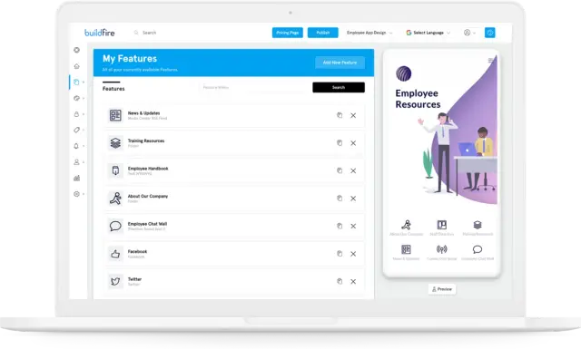 - BuildFire: BuildFire is a feature-rich, low-code app builder that simplifies Android app development by providing an intuitive interface and a range of pre-built templates. BuildFire supports numerous integrations and offers features like social media integration, push notifications, and in-app purchases. The platform offers a free trial, and premium plans start at $159 per month.