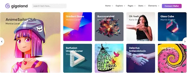 The Gigaland NFT marketplace template is an NFT wonderland! With an absolutely gorgeous, colorful, fully responsive display, it is every NFT artist's dream! With striking bold colors, graphics, and text, this NFT marketplace template has been designed to ensure maximum user retention. This NFT website gives excellent value for money, with a selection of over 140 web pages in addition to 20 different homepage themes to choose from.