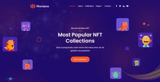 The Monteno template is flexible, allowing users to customize their NFT websites with its adaptable themes. Users also benefit from the regular updates to these NFT marketplace templates. This helps to keep the design of their NFT website looking fresh, new, and appealing. The graphics are attractive and colorful without going over the top and feature Font Awesome icons. This NFT marketplace template is a perfect example of striking just the right balance between beauty and functionality.