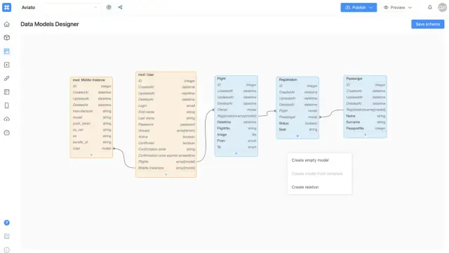 In AppMaster.io, databases are presented in a slightly different way. The platform has a Data Models Designer where you can build a database schema, create data models, build relationships between them and add fields.
