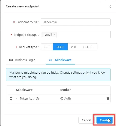 Now save the endpoint by clicking "Create".