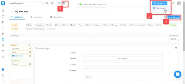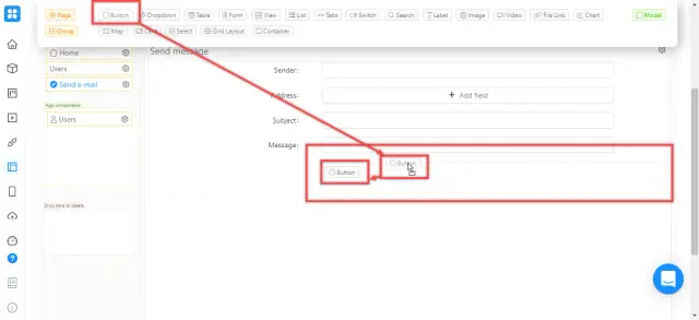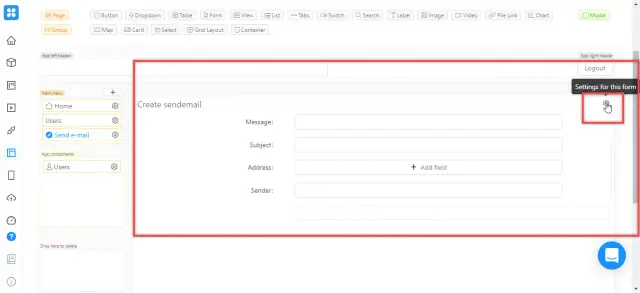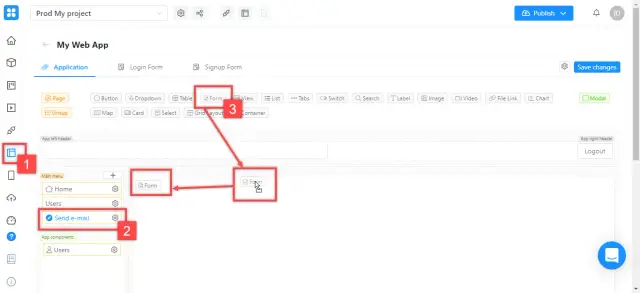 To create a form, return to the web application editor, to the tab you created earlier. Drag a Form element onto the page canvas.