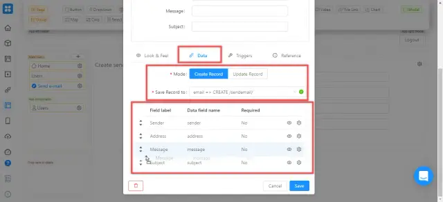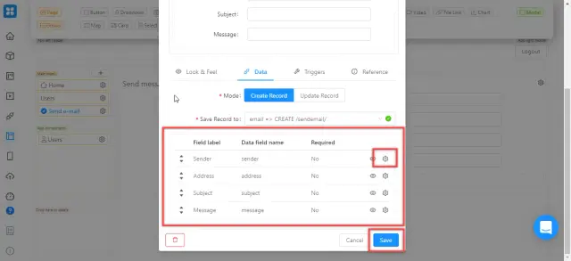 Arrange the fields in a logical order: Sender, Address, Subject, Message. To change the detailed settings for each field (for example, its name) - click on the gear icon next to it. Click “Save” to save your changes.