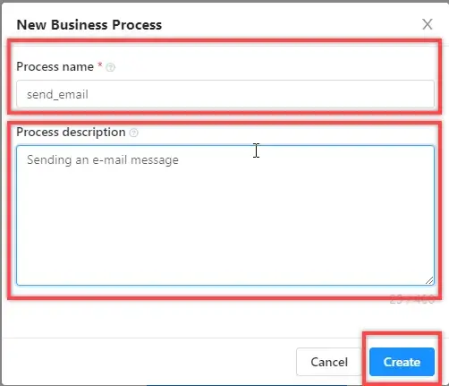 Enter the name of the process (required), its description (optional), and click the "Create" button.