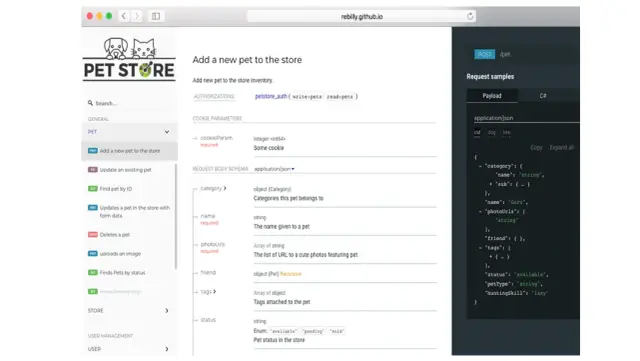 ReDoc is an OpenAPI or Swagger-generated tool for reference API documentation. It enables simple deployment and can bundle documents into independent HTML files. It also supports the OpenAPI 2.0 capabilities, including the discriminator, and provides server-side rendering. Additionally, it supports the responsive 3-panel design with a menu or scrolling synchronization, OpenAPI 3.0, code examples, and other features. Even interactive and attractive documentation for nested objects is available.