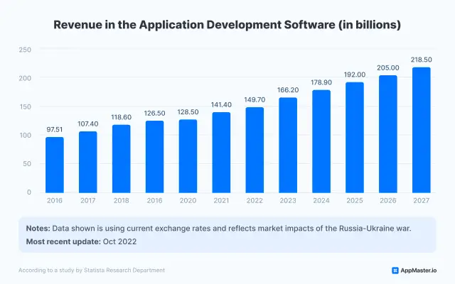 Web app development is a lucrative and rapidly growing industry, with revenue projected to reach US$166.20bn in 2024. This upward trend is expected to continue, with an annual growth rate of 7.12% forecasted for the period of 2024-2027, resulting in a market volume of US$218.80bn by 2027.