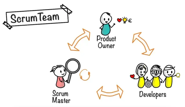 The three prominent roles conduct the entire process: scrum master, product owner, and the team.