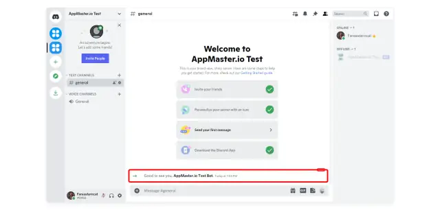 Nous vous expliquerons comment créer un serveur, un canal et un bot Discord, puis ajouter le bot créé à votre serveur. Vous pouvez lire comment configurer l'envoi de messages sur la plate-forme AppMaster.io dans cet article .