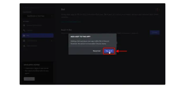 4. Acceptez d'ajouter un bot à votre application.