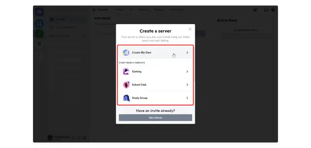 2. Choisissez un modèle de serveur en fonction de votre secteur d'activité ou créez le vôtre.