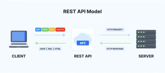 REST - प्रतिनिधि राज्य स्थानांतरण - क्लाइंट-सर्वर आर्किटेक्चर को संदर्भित करता है जिसमें उपयोगकर्ताओं को JSON या एक्सएमएल संचार के माध्यम से बैकएंड जानकारी तक पहुंच होती है। एक API को RESTful माना जाता है यदि: