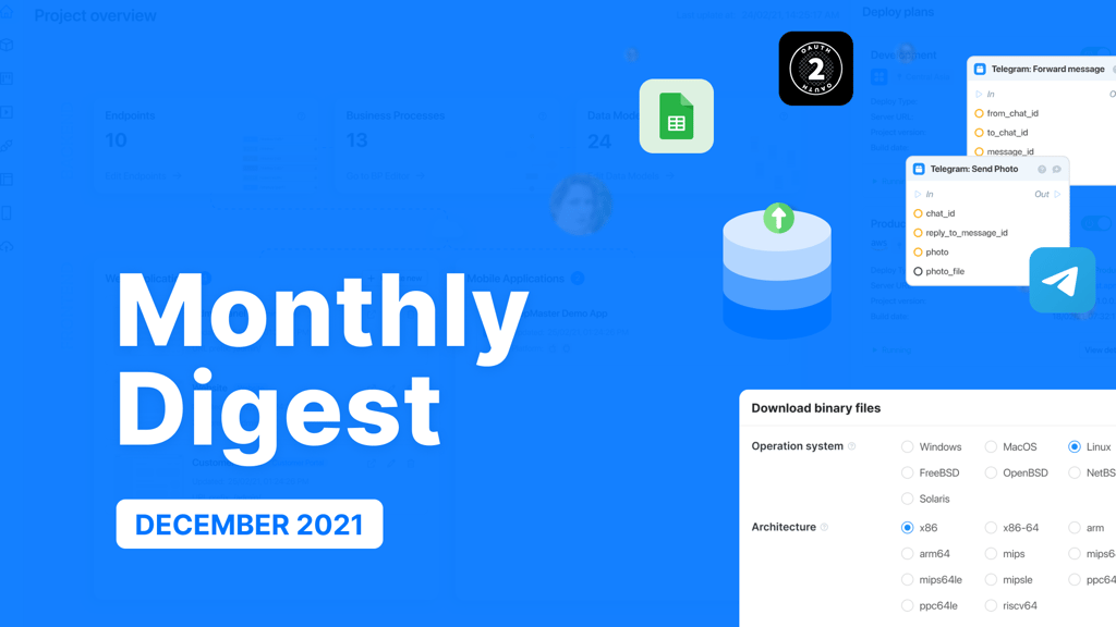 Le applicazioni create con AppMaster.io compilano già molti sistemi operativi con diverse architetture di processore. Abbiamo esteso l'elenco dei sistemi operativi per gli account aziendali per offrire ai nostri utenti più opzioni.Tra i sistemi supportati ci sono Linux, macOS, Windows, FreeBSD, OpenBSD, NetBSD, Solaris con le seguenti architetture di processore: x86 (i386), x86-64 (amd64), arm, arm64.