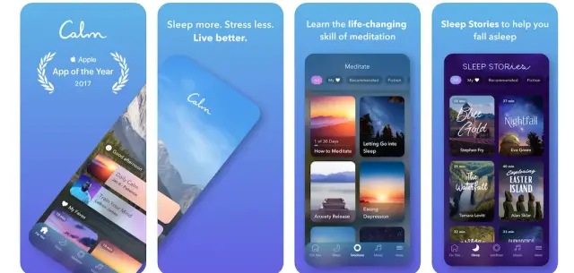 リストの 3 番目は Calm で、ユーザーが不安を克服し、落ち着いて瞑想できるようにサポートする調整可能なプログラムとアクティビティを提供します。 1 週間のトライアル プランと、生涯にわたって 70 米ドルまたは 400 米ドルの年間サブスクリプションを提供しています。それは: