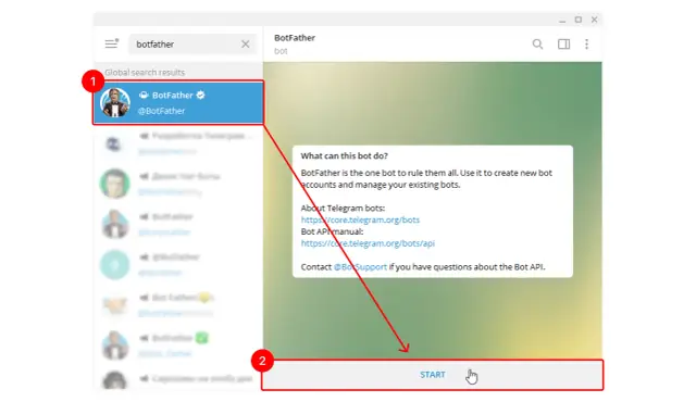 Aby utworzyć i zarządzać botami, musisz użyć BotFather, bota opracowanego przez zespół Telegram.
