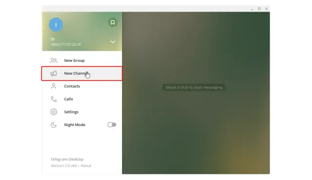 Aby utworzyć kanał, przejdź do menu swojego konta i kliknij "Nowy kanał".