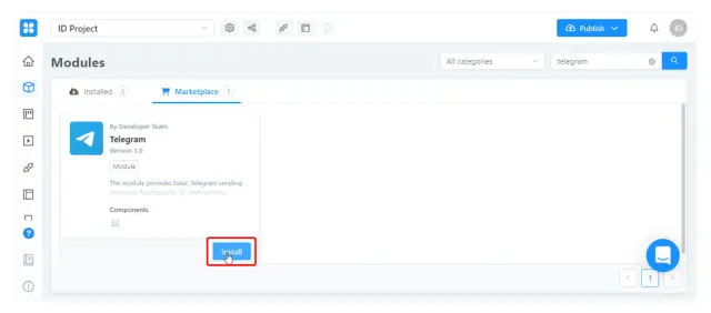 Podłącz swoją aplikację do modułu Telegram i zarządzaj botem, aby wysyłać wiadomości do kanałów telegramu.