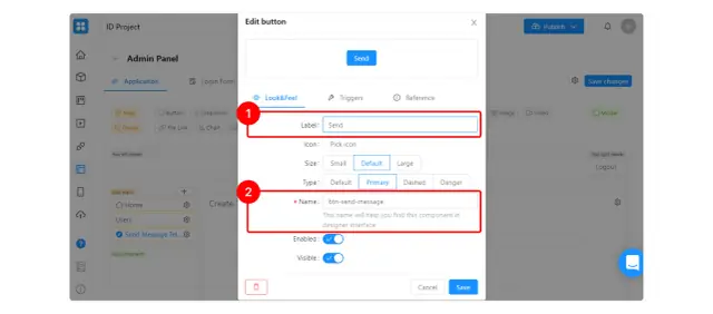 Wpisz nazwę, która będzie wyświetlana na przycisku (1) oraz unikalną nazwę, po której będziesz go wyszukiwał w ustawieniach (2). W razie potrzeby zmień jego wygląd.