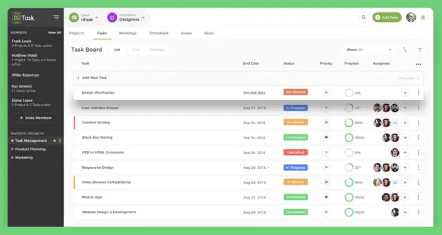 Narzędzie do zarządzania projektami nTask posiada następujące funkcje: