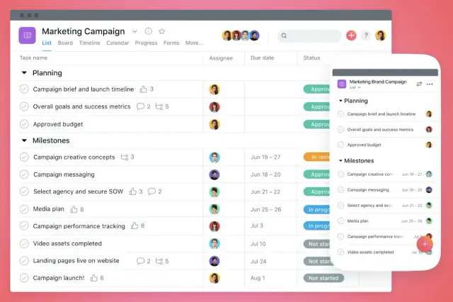 Oprogramowanie do zarządzania projektami Asana posiada następujące funkcje: