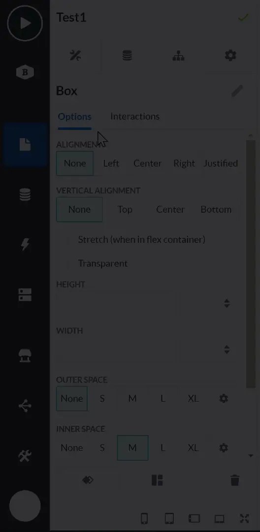 Betty Blocks предоставляет пользователям возможность построения фронтенда приложения, состоящего из визуальных и функциональных компонентов. Компоненты можно перетягивать, для построения веб-интерфейса, а логические схемы собираются таким же образом, как и в бэкенд части. Отличительной особенностью является возможность гибкой настройки стилей компонентов, как представлено ниже.