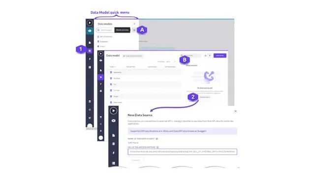 Вы можете включать данные из систем за пределами платформы Betty Blocks. Таким образом, можно быть уверенным, что получите данные, необходимые для вашего приложения. Данные могут быть включены в ваше приложение, чтобы предоставить детали, необходимые для поддержки бизнес-потребностей. После того, как вы определили необходимые данные, вы можете создать соединение через интерфейс прикладного программирования, отражающее конкретную информацию в вашем приложении. В модели данных вашего приложения вы можете создать одну (или несколько?) моделей, которые связаны с вашим пользовательским интерфейсом через модуль Pages. Таким образом, можно создавать приложения в соответствии с потребностями бизнеса.
