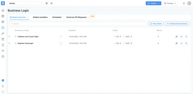 - Validate and create flights — процесс, который будет использоваться для замены бизнес-процесса Create flight;