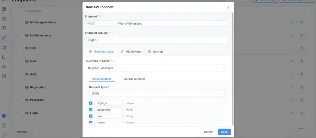 Теперь можно настроить следующий эндпоинт для процесса Register passenger.