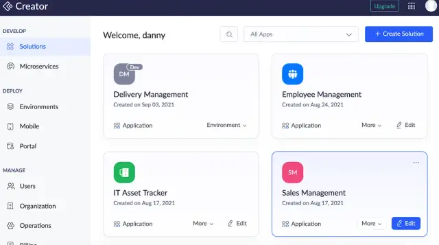 Zoho Creator — это инновационная платформа, которая предлагает интуитивно понятный и удобный интерфейс, а также множество готовых приложений, что делает ее идеальным выбором, особенно для малого бизнеса и индивидуальных пользователей. Этим пользователям часто требуется простой и удобный интерфейс, когда дело доходит до создания приложений и управления ими, и Zoho Creator идеально отвечает этим потребностям.