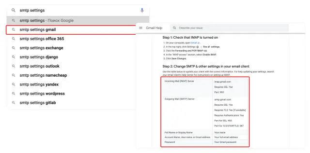 Модуль Custom SMTP и Gmail: где искать настройки