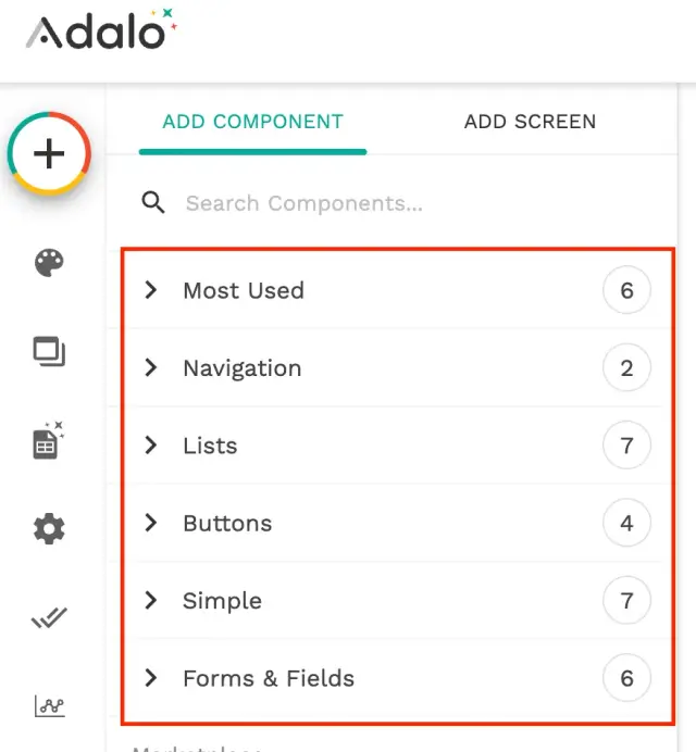 Adalo: ограниченный функционал, что не дает возможности пользователям создавать более сложные продукты, но позволяет легко разобраться с самим инструментом.