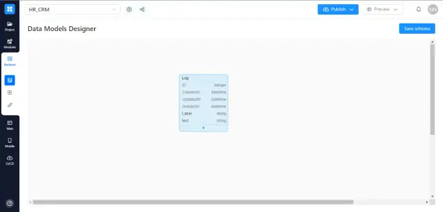 Для создания логера создадим модель данных – Log и добавим в нее поля: