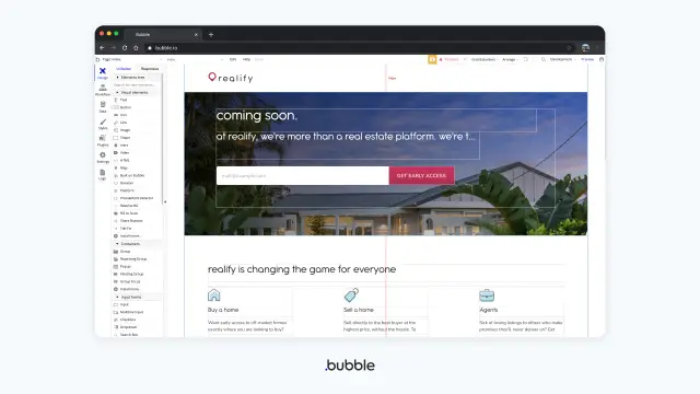 Bubble, bir tür no-code geliştirme mastodonudur. Web uygulamaları oluşturmanıza olanak tanır, geniş bir araç setine sahiptir ve eklentileri kullanarak genişleme yeteneğine sahiptir.