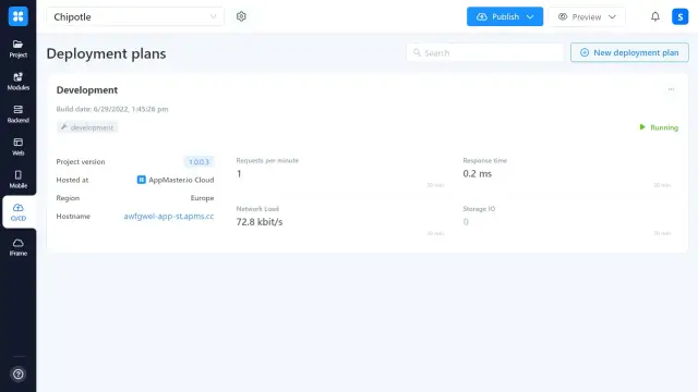 AppMaster ile uygulamalarınızı tek tıkla hızlı bir şekilde dağıtabilirsiniz. Ayrıca uygulama arka ucunun ana süreçleri için kalıcı bir kayıt sistemi, kullanıcıların mantıktaki hataları zamanında yakalamasını sağlar. Yerleşik blokları kullanarak ek günlük kaydı eklemek mümkündür.