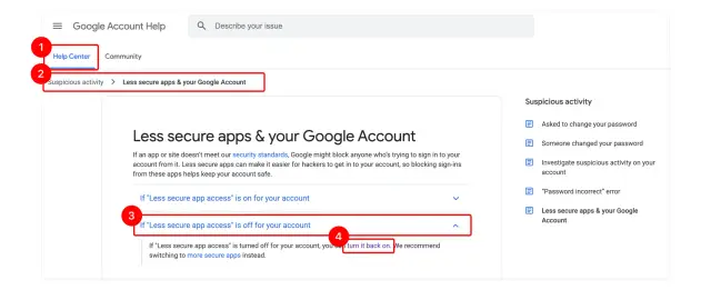 Yardım merkezine gidin ve erişim kontrol sayfasını açmak için ilgili bağlantıya tıklayın. İşte adres: https://myaccount.google.com/lesssecureapps .
