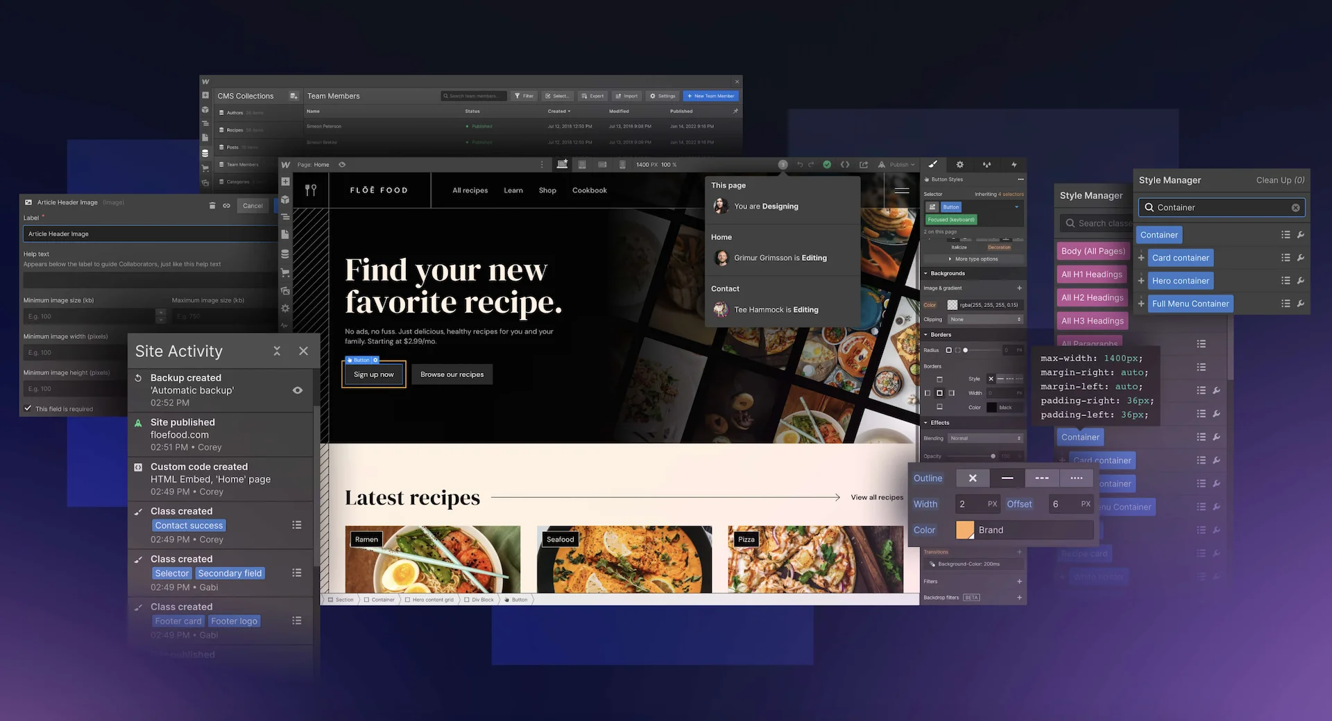 Another pivotal feature of Webflow is its integrated Content Management System (CMS). This system enables users to manage and update their site's content effortlessly, allowing for dynamic changes without the need for direct code manipulation. Whether it's text, images, or other forms of media, the CMS ensures that content can be efficiently integrated, managed, and modified to meet the evolving needs of the website and its audience.