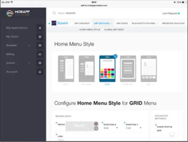 一旦你选择了应用程序模板,你可以添加布局、配色方案、你的商标和文本,以获得更个性化的产品。