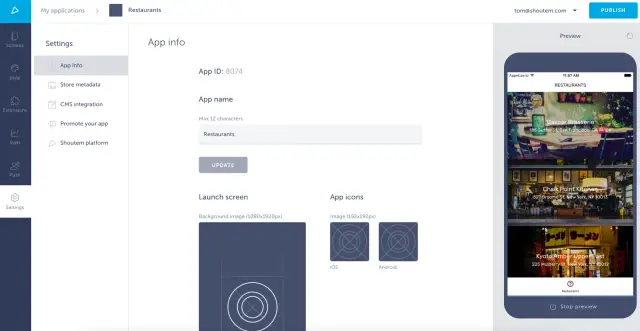 Shoutem是一个在线应用程序生成器,帮助企业主将他们的想法变成现实。这个应用程序生成器的重点是设计,所以这个平台的所有免费模板都有时尚的应用程序设计。因此,如果你正在寻找一个具有视觉吸引力的应用程序,那么Shoutem应用程序生成器是最佳选择。这些应用程序模板是免费的,可以很容易地进行定制。你可以使用免费的应用程序模板修改主题、布局、颜色和文本。因此,你的应用程序将看起来更有针对性,并包含有用的功能。